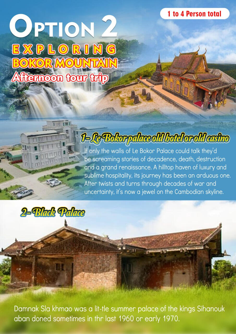 At this great tour we will visit Le Bokor palace old hotel or old casino, Black palace, Temple old pagoda, Buddha statue, Popokvil Waterfall, Old church and Monkey Roam Bokor road.Time starts: pick up at the hotel at 1:15pm be back around sunset 🌇Including: cold water transportingdriver English speaking guide. We go with a private car 🚗 And you will not joining a group 🙏 💕Contact me about pricing depending on the vehicele etc.!
